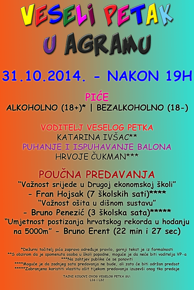 Listopad ćemo zaključiti novim Veselim petkom koji je na rasporedu 31.10.2014. nakon 19h.